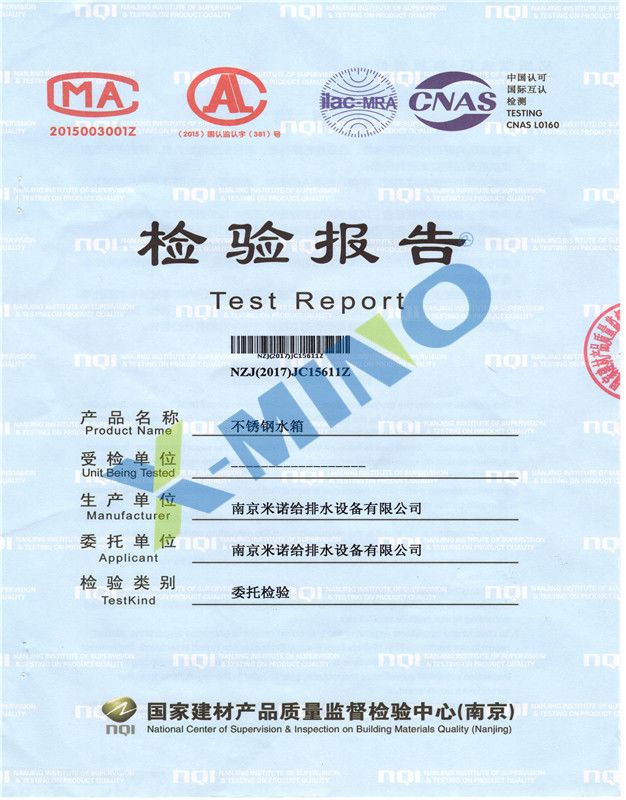 不銹鋼水箱檢測報告