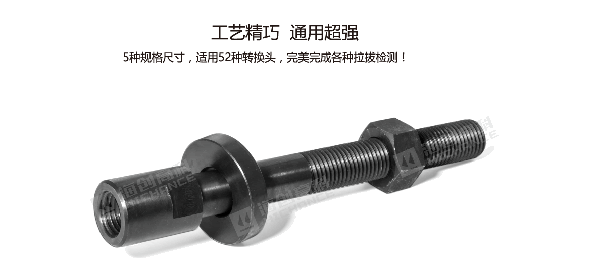 5種規(guī)格尺寸,適用52種轉(zhuǎn)換頭,組合完成各種拉拔檢測(cè)!