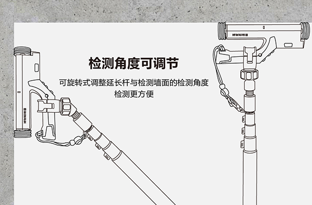 可旋轉(zhuǎn)式調(diào)整延長桿與檢測(cè)墻面的檢測(cè)角度