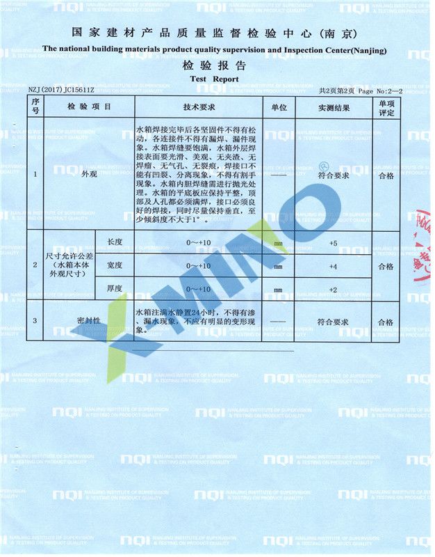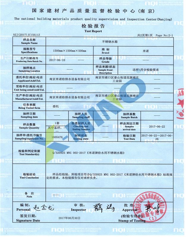 不銹鋼水箱檢測報告